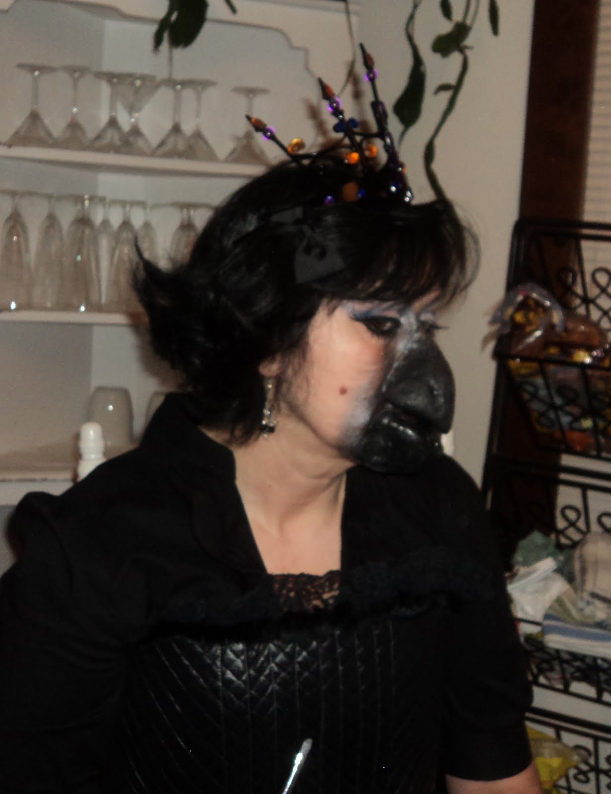 Mom said I needed to define the beak more with makeup. so I added some silver and black shadow to the edges of the beak where they meet my cheeks and chin.